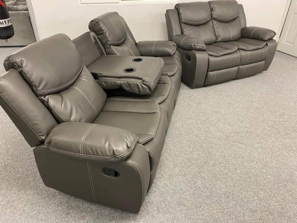 Elevate your living space with the Highgate Leather Recliner Set (3+2) with Cupholders by Best Sofa Hub. This luxurious set, crafted from premium grey leather, seamlessly combines timeless elegance with modern functionality, making it the perfect addition to any home.