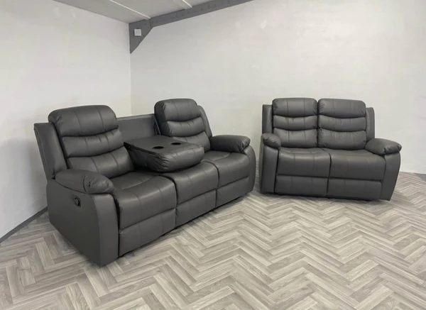 - Premium Leather Upholstery: Upholstered in high-quality grey leather, the Roma Recliner Set offers a luxurious feel while ensuring durability and easy maintenance. The neutral grey tone complements a wide range of color schemes.