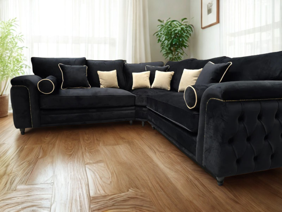 Make a bold, timeless statement with the Zara Chesterfield Corner Sofa, an iconic design reimagined for modern living. Upholstered in sumptuous Black Plush Velvet and handcrafted in the UK by Best Sofa Hub, this elegant corner sofa blends traditional charm with contemporary comfort.