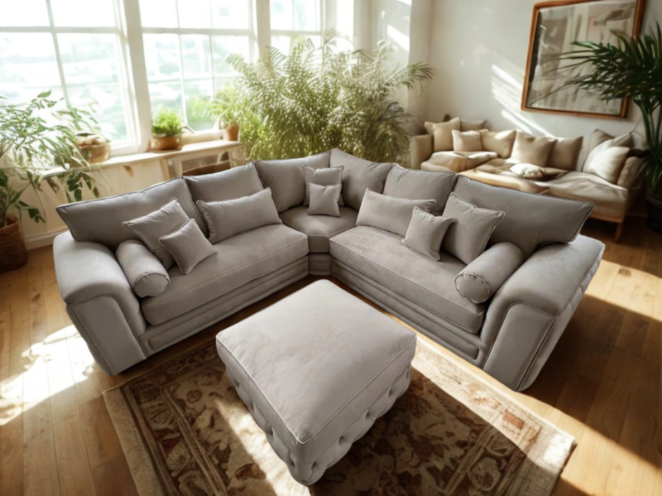 Zara Chesterfield Corner Sofa – Cream Plush Velvet | Best Sofa Hub